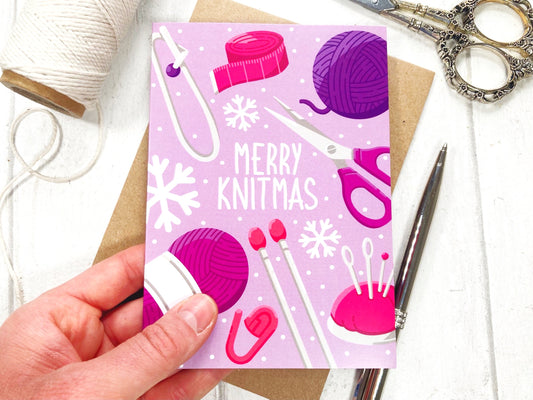 Xmas Knit - A6 Greetings Card by Little Green Stitches