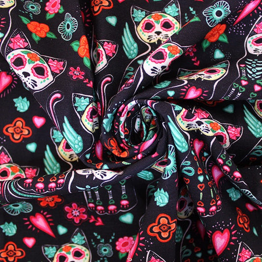 Little Johnny Sugar Skull Cats Cotton - 1M Remnant