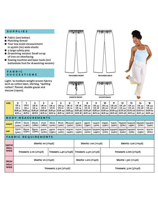 Tilly and the Buttons Jaimie Pyjama Shorts or Trousers - UK Sizes 4-34