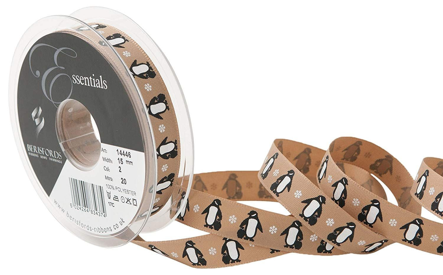 Berisfords Oatmeal Penguins 15mm Ribbon