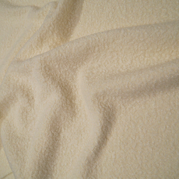 Boucle is a looped fabric, which gives its unique texture. It is a medium weight knit, with minimal stretch.