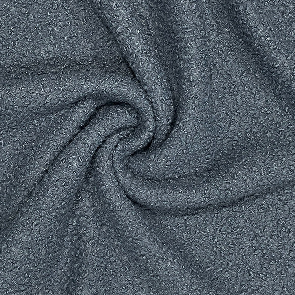 Boucle is a looped fabric, which gives its unique texture. It is a medium weight knit, with minimal stretch.