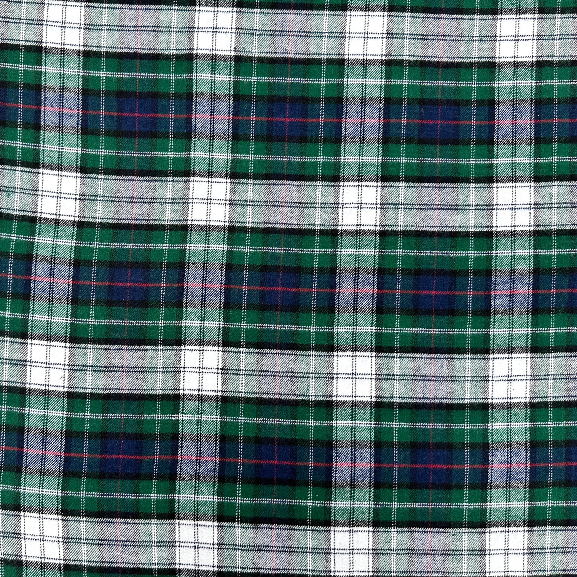 This soft brushed cotton fabric in a classic green and navy check offers a cozy, warm feel that’s perfect for creating comfortable shirts, pyjamas, dresses, and skirts.