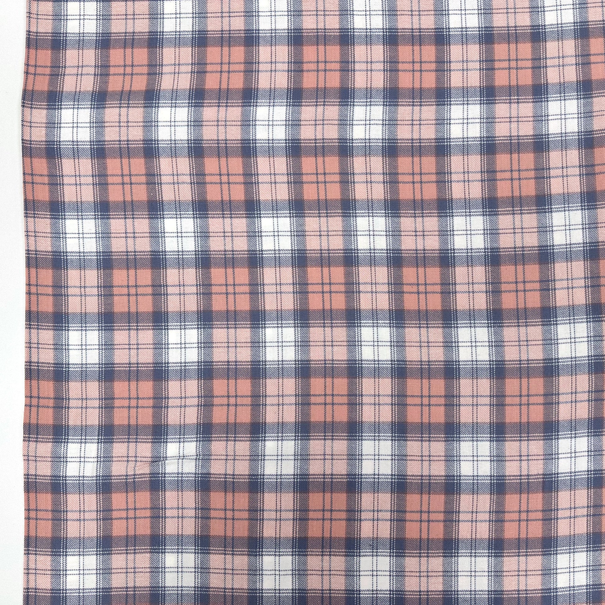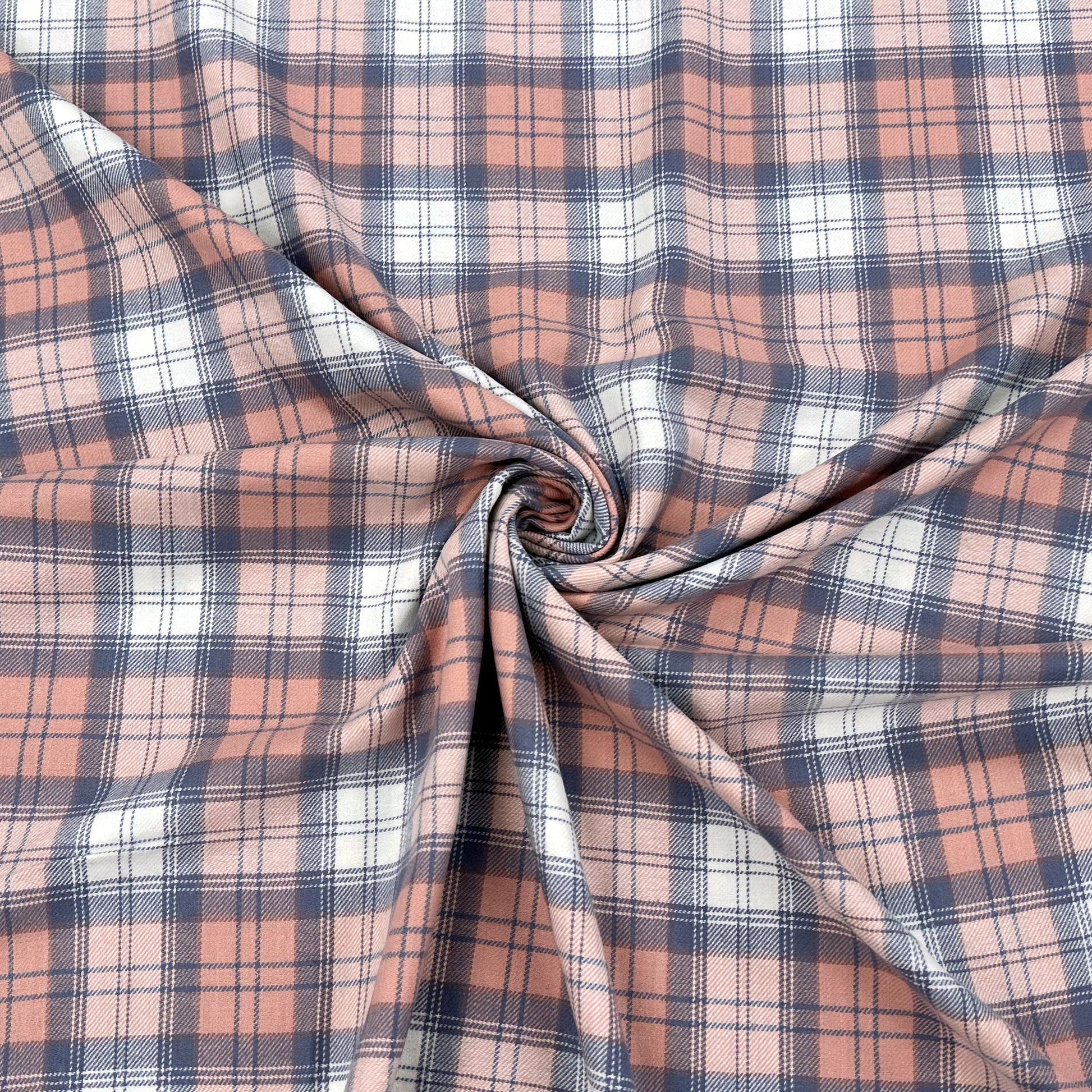 This soft brushed cotton fabric in a soft pink and blue check offers a cozy, warm feel that’s perfect for creating comfortable shirts, pyjamas, dresses, and skirts.
