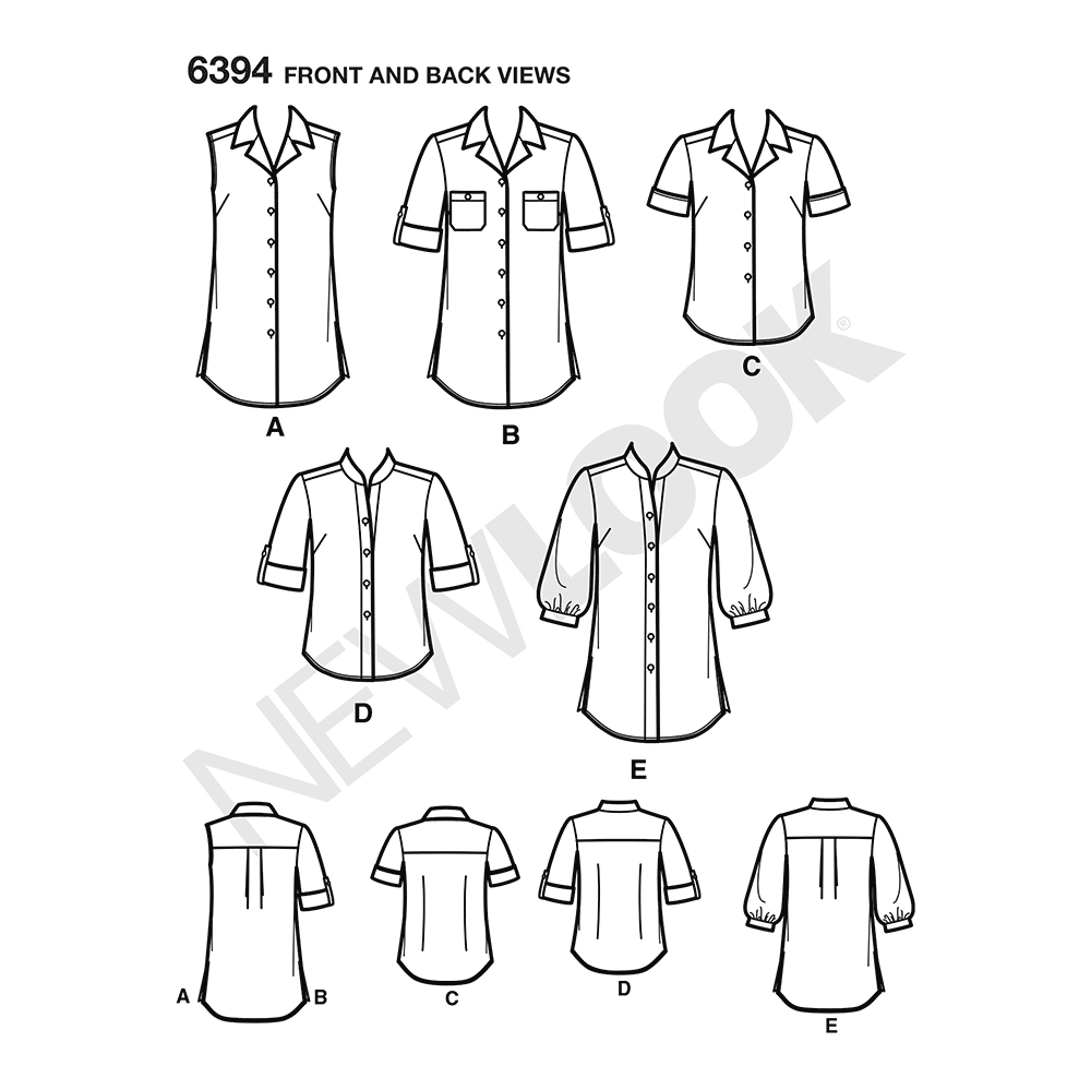 With this easy button front top pattern you get a variety of sleeve lengths, hem lengths, and both classic and stand collars. New Look sewing pattern.