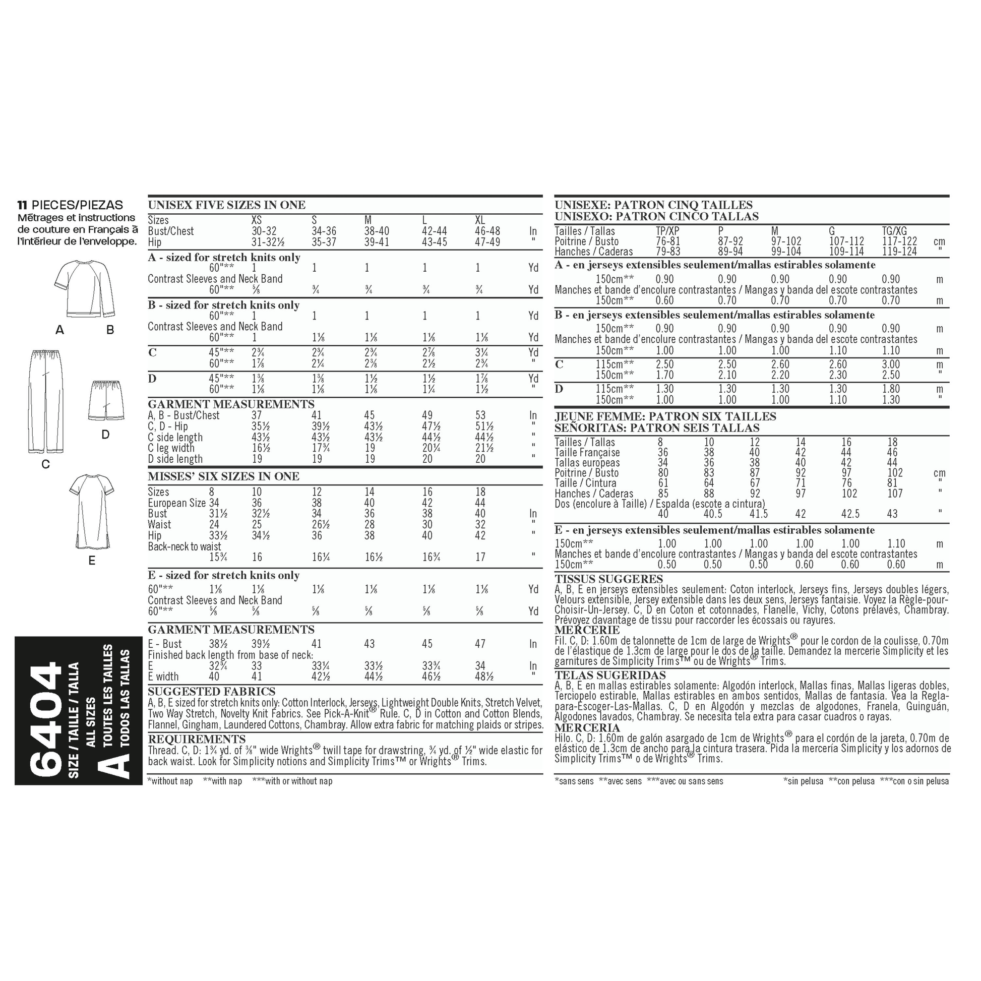 This easy loungewear pattern for misses and men include knit top in short or long sleeve, and pull on pants. Knit nightshirt also included sized for miss only. New Look sewing pattern.