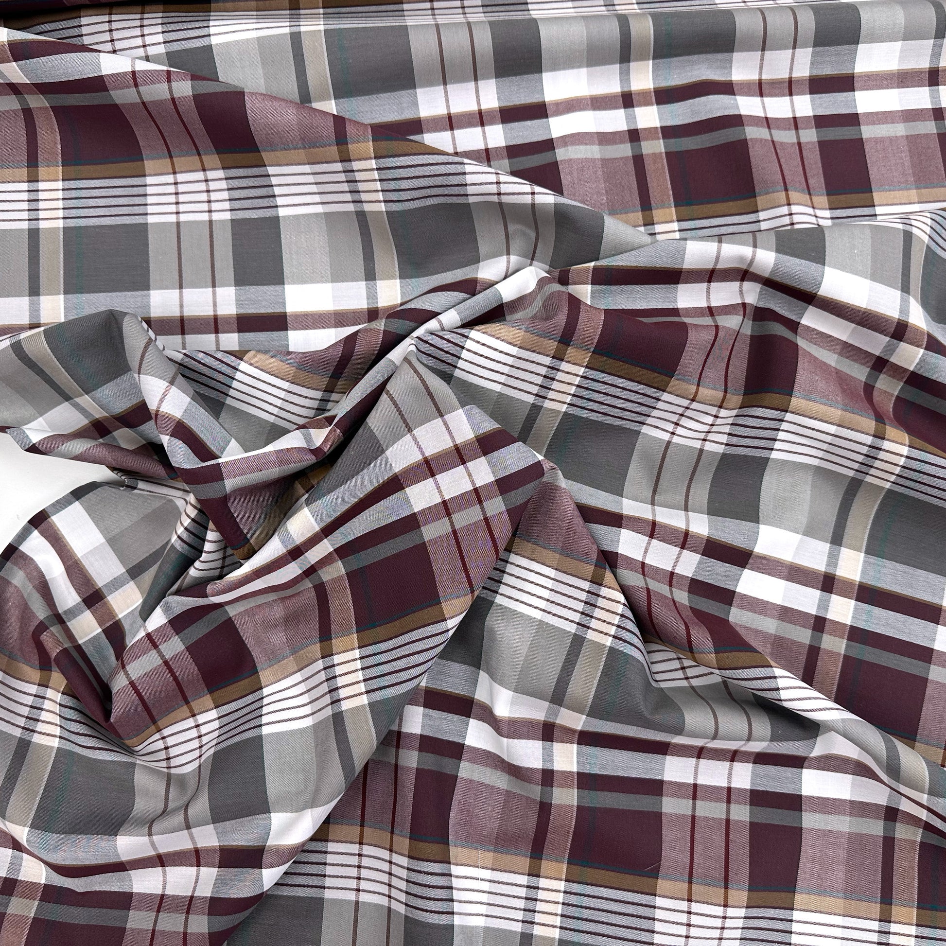 Platinum Berry Cotton Check Shirting - 55CM Remnant