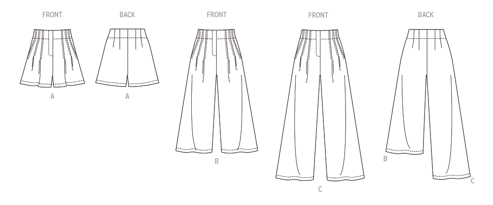 Shorts or pants have faced waist, front pleats, side front pockets and zipper fly.