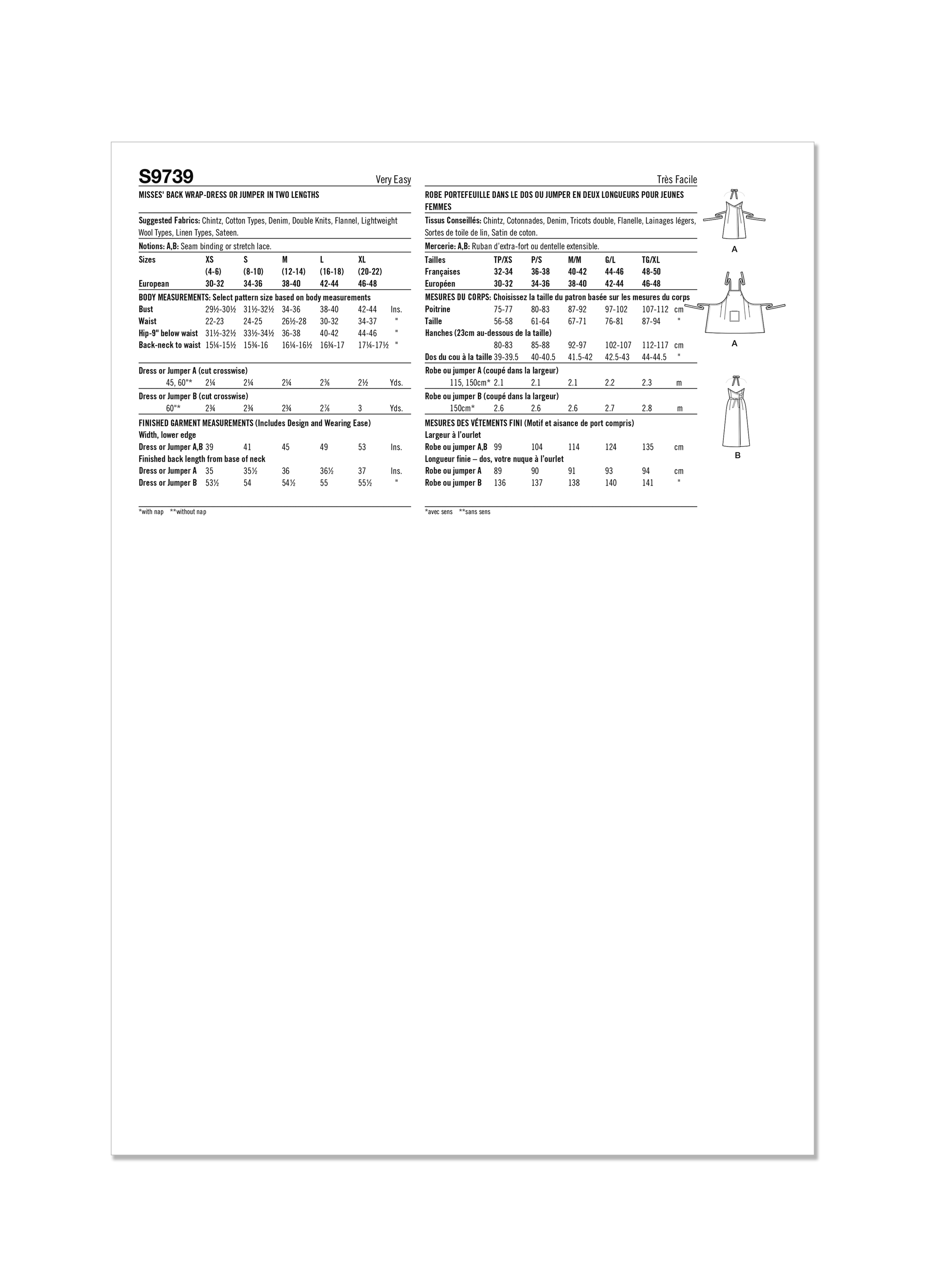 Super Jiffy Back-Wrap Dress and Jumper are simple to sew and come in two lengths. The vintage top-stitched, back-wrap dress and jumper are without side seams, have belt crossed in front and tied in back, and have tie ends tied at back neck.