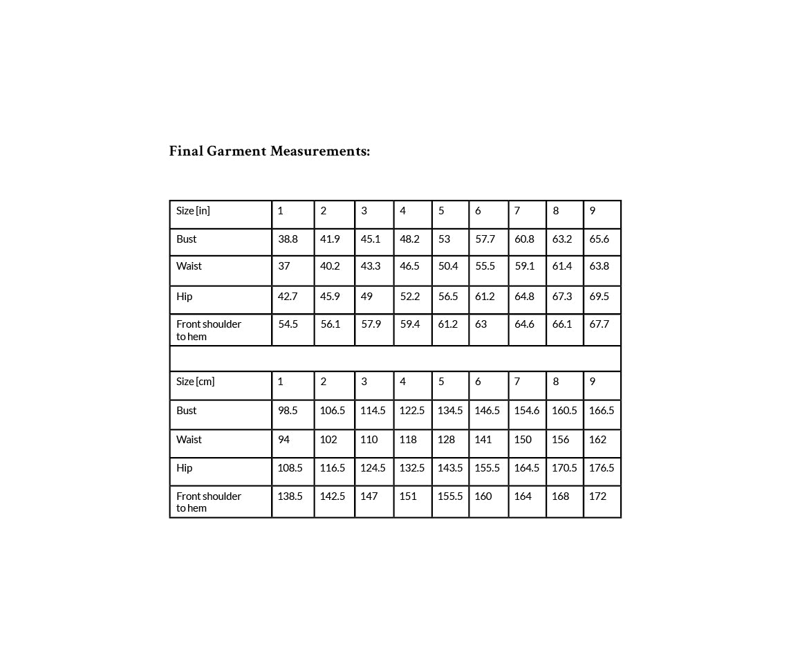 Sizes 1 (2, 3, 4, 5) (6, 7, 8, 9): Choose your size based on your bust circumference. Add a recommended positive ease of 5.9–8.6"/15–22 cm. Pick the size that is the best match for your bust. Saranya Meromaa is wearing ALEXIS in size 3. She is 63"/161 cm tall.